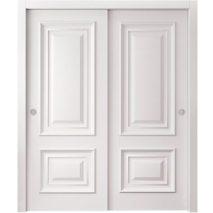 Sliding Closet Bypass Doors | ROYAL 9822 White Enamel | Rails Hardware Set | Wood Solid Bedroom Wardrobe Doors