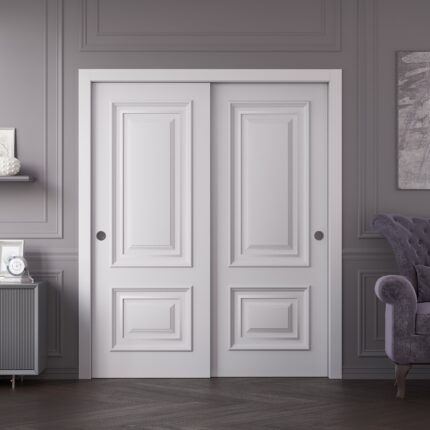 Sliding Closet Bypass Doors | ROYAL 9855 White Enamel | Rails Hardware Set | Wood Solid Bedroom Wardrobe Doors