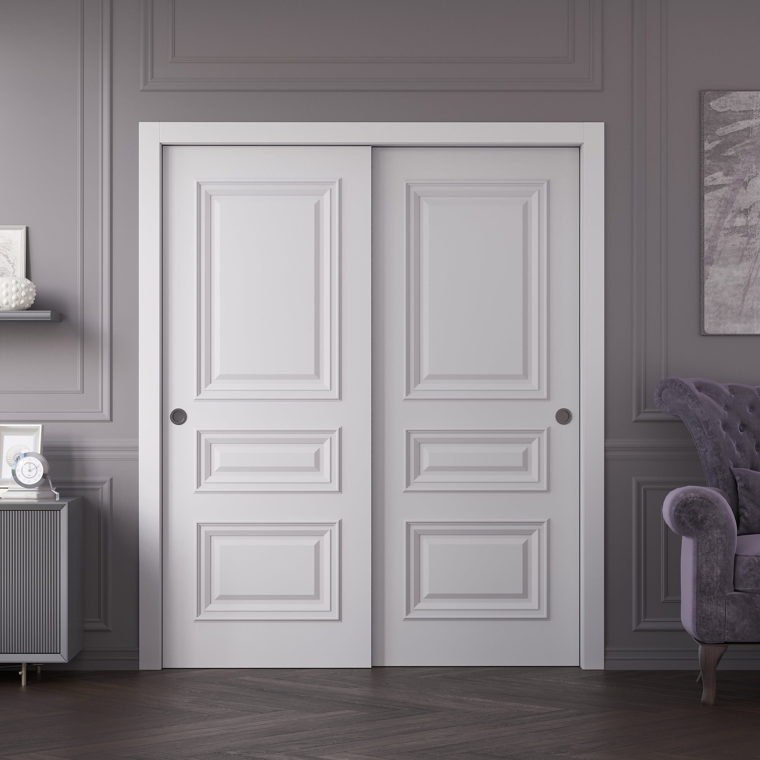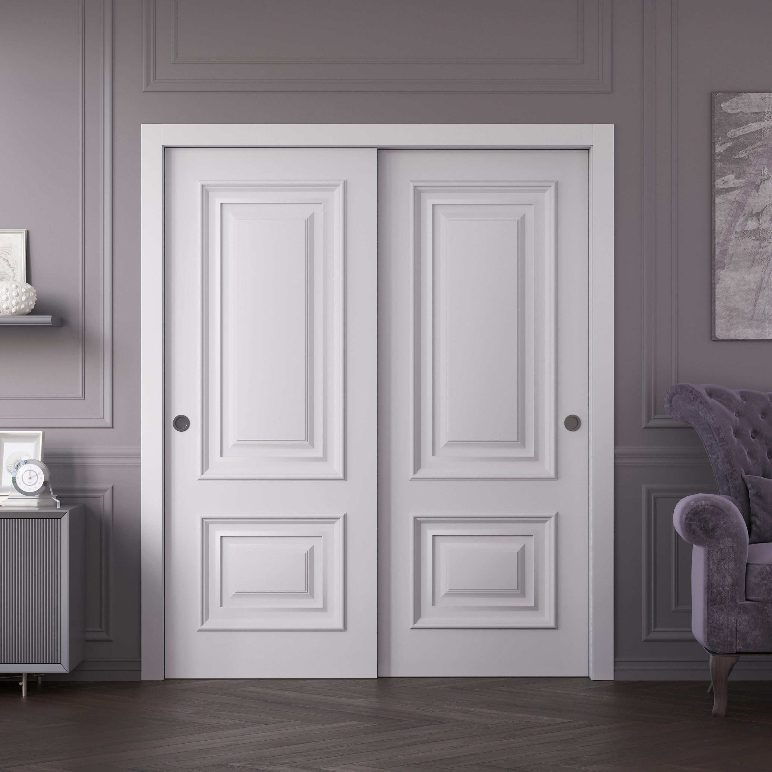 Sliding Closet Bypass Doors | Veregio 7411 Antracite| Sturdy Rails Moldings Trims Hardware Set | Wood Solid Bedroom Wardrobe Doors