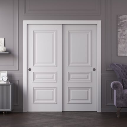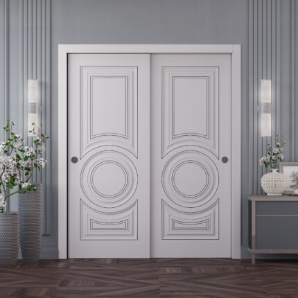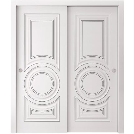 Sliding Closet Bypass Doors | ROYAL 9833 White Enamel | Rails Hardware Set | Wood Solid Bedroom Wardrobe Doors