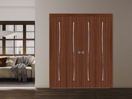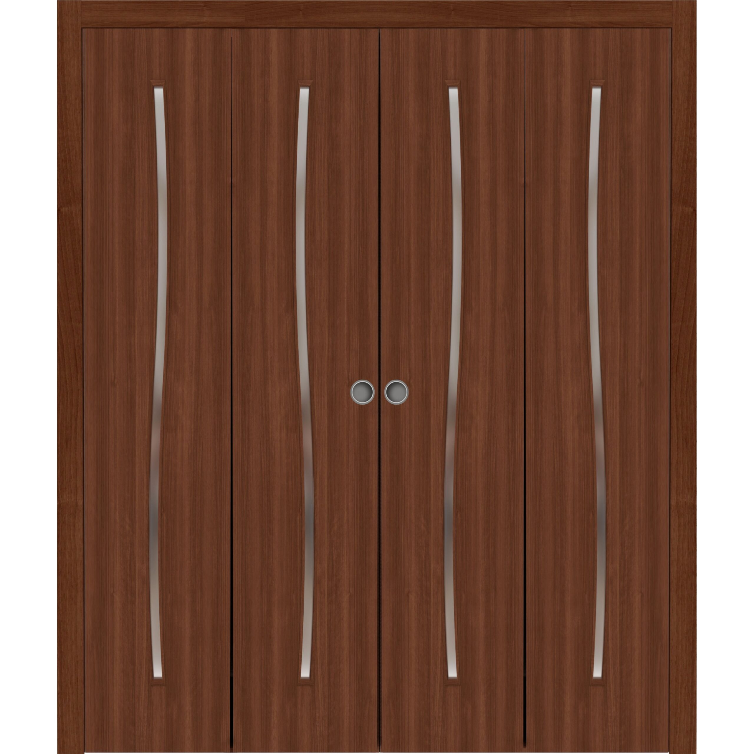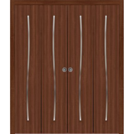 Sliding Closet Double Bi-fold Doors | BASIC 3002 Walnut | Sturdy Tracks Moldings Trims Hardware Set | Wood Solid Bedroom Wardrobe Doors