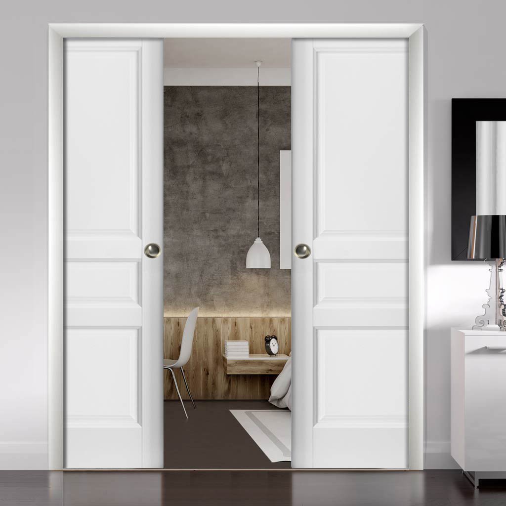 Sliding Double Pocket Doors | BASIC 9772 White | Kit Rail Hardware | Solid Wood Interior Bedroom Doors