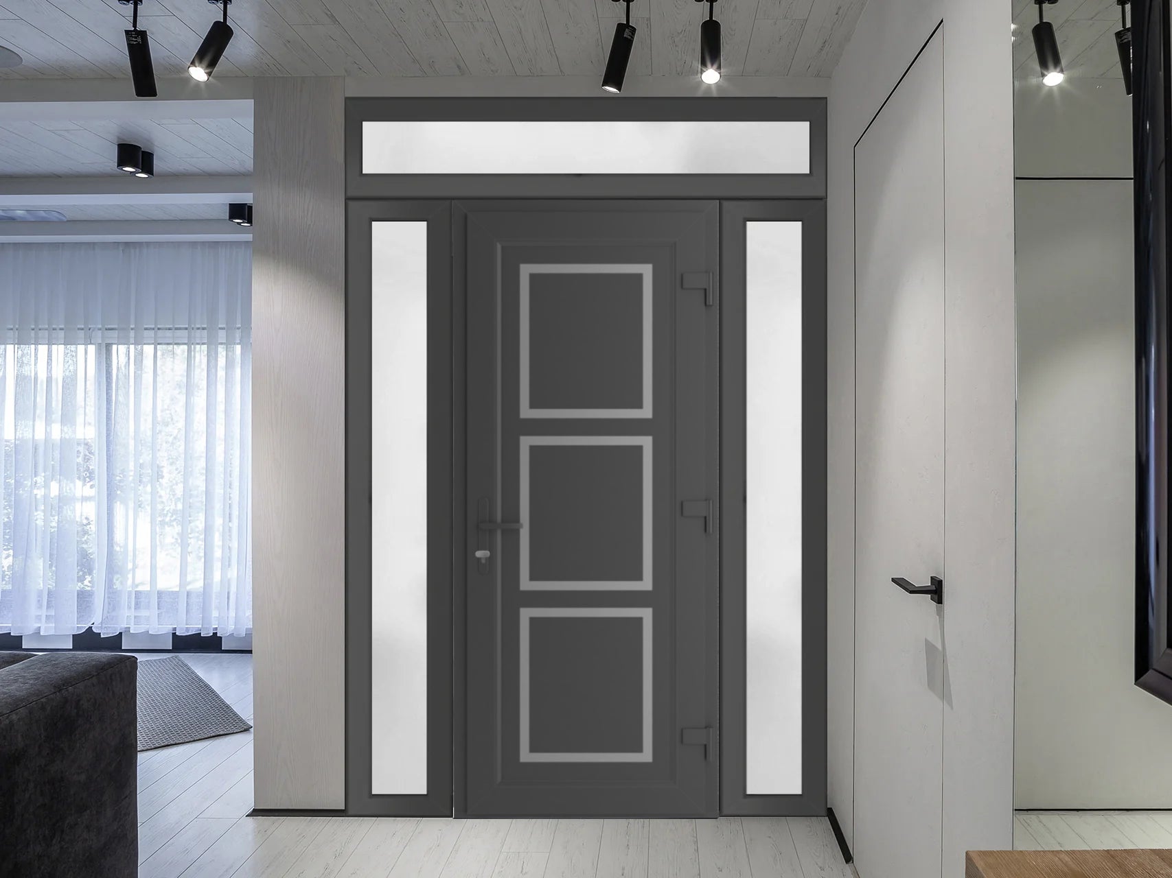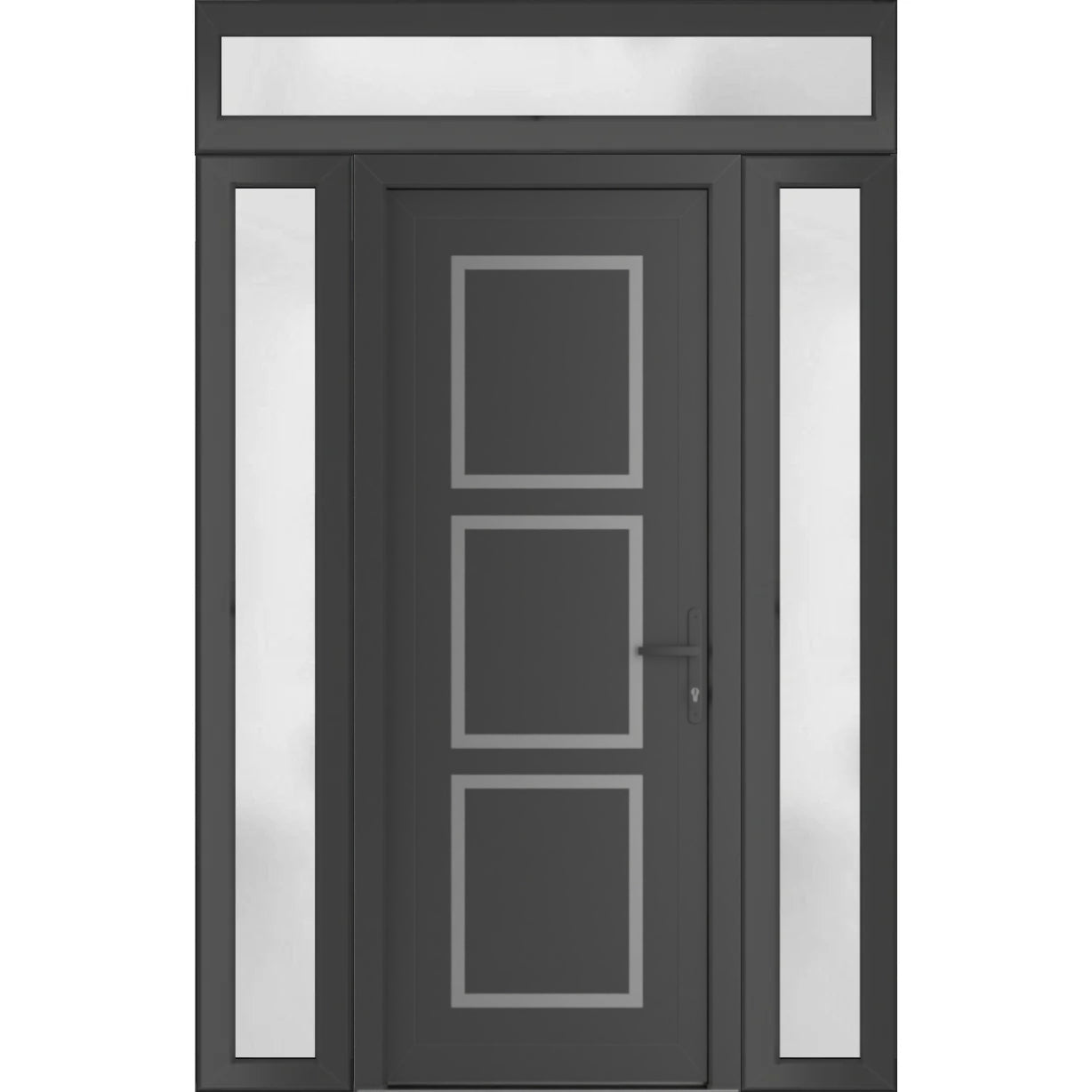 Front Exterior Prehung Metal – PlasticDoor | Manux 8661 Antracite Grey | 2 Side and Top Sidelite Transom | Office Commercial and Residential Doors Entrance Patio Garage