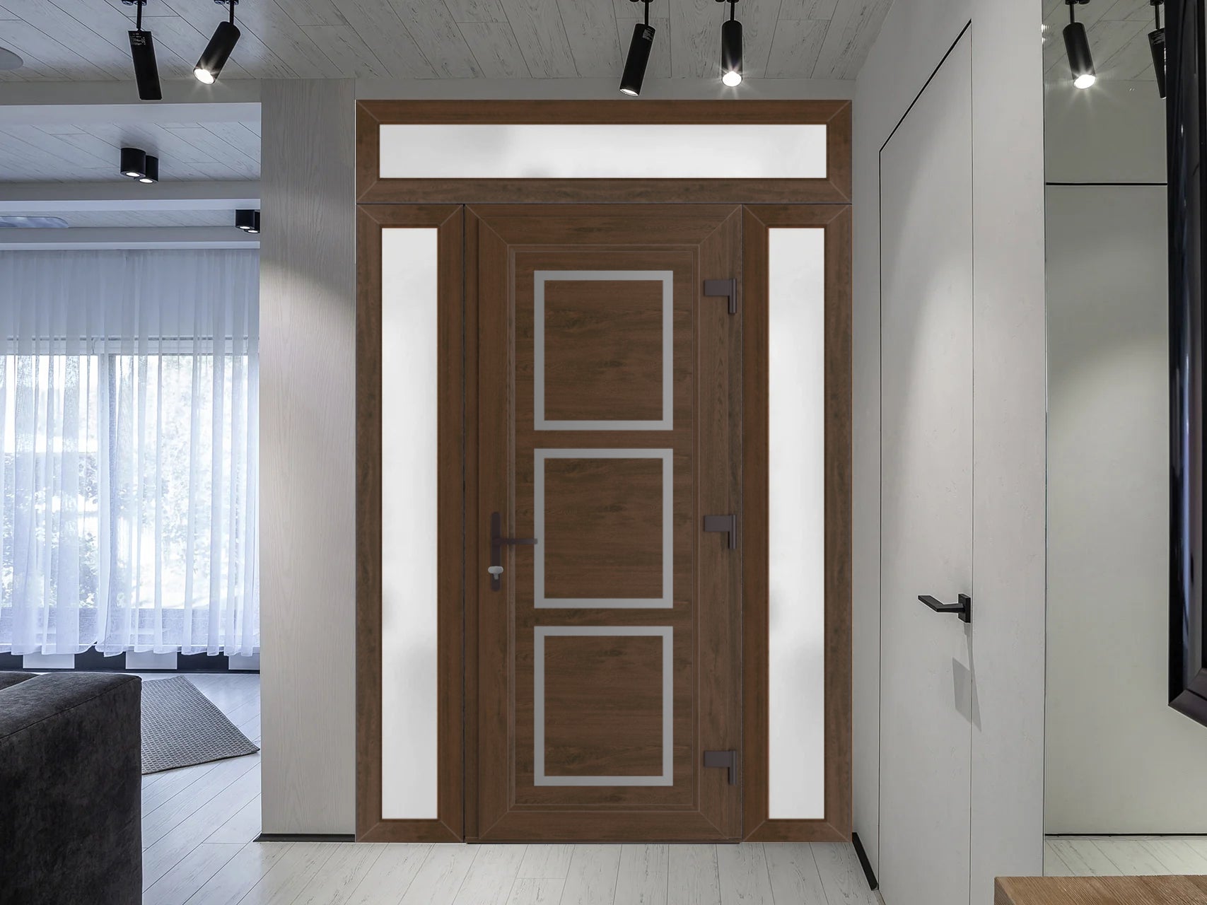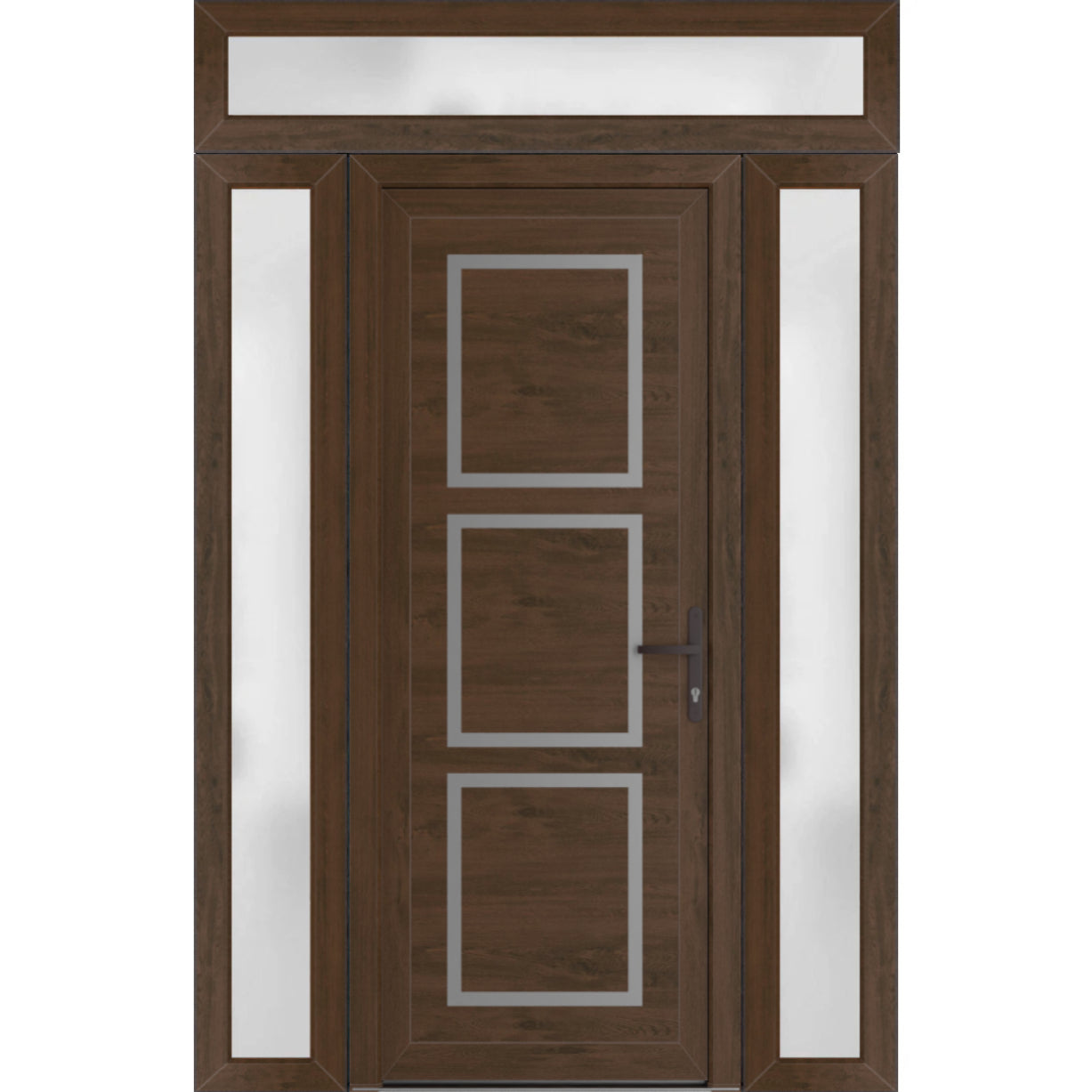 Front Exterior Prehung Metal – PlasticDoor | Manux 8661 Walnut | 2 Side and Top Sidelite Transom | Office Commercial and Residential Doors Entrance Patio Garage