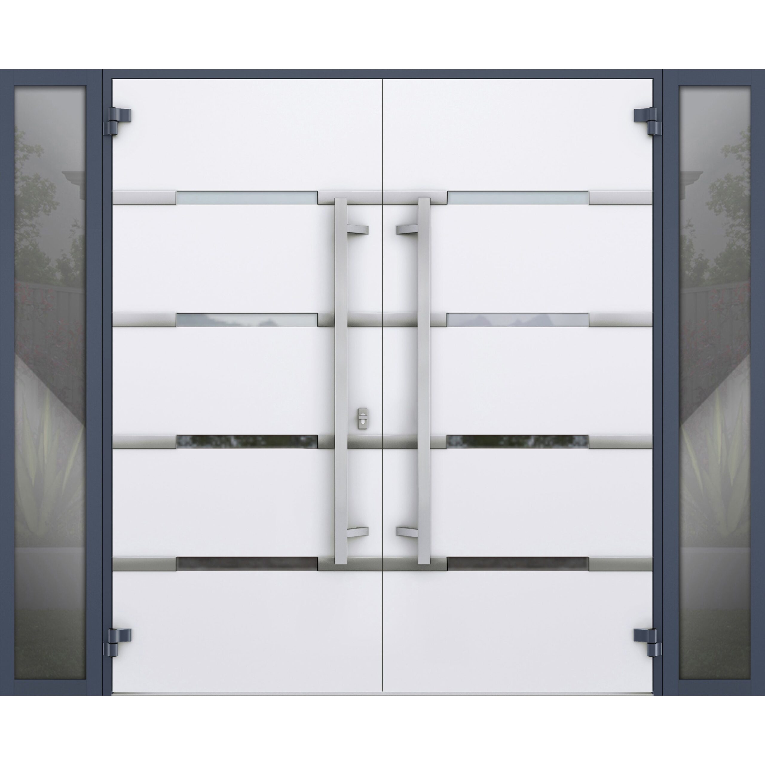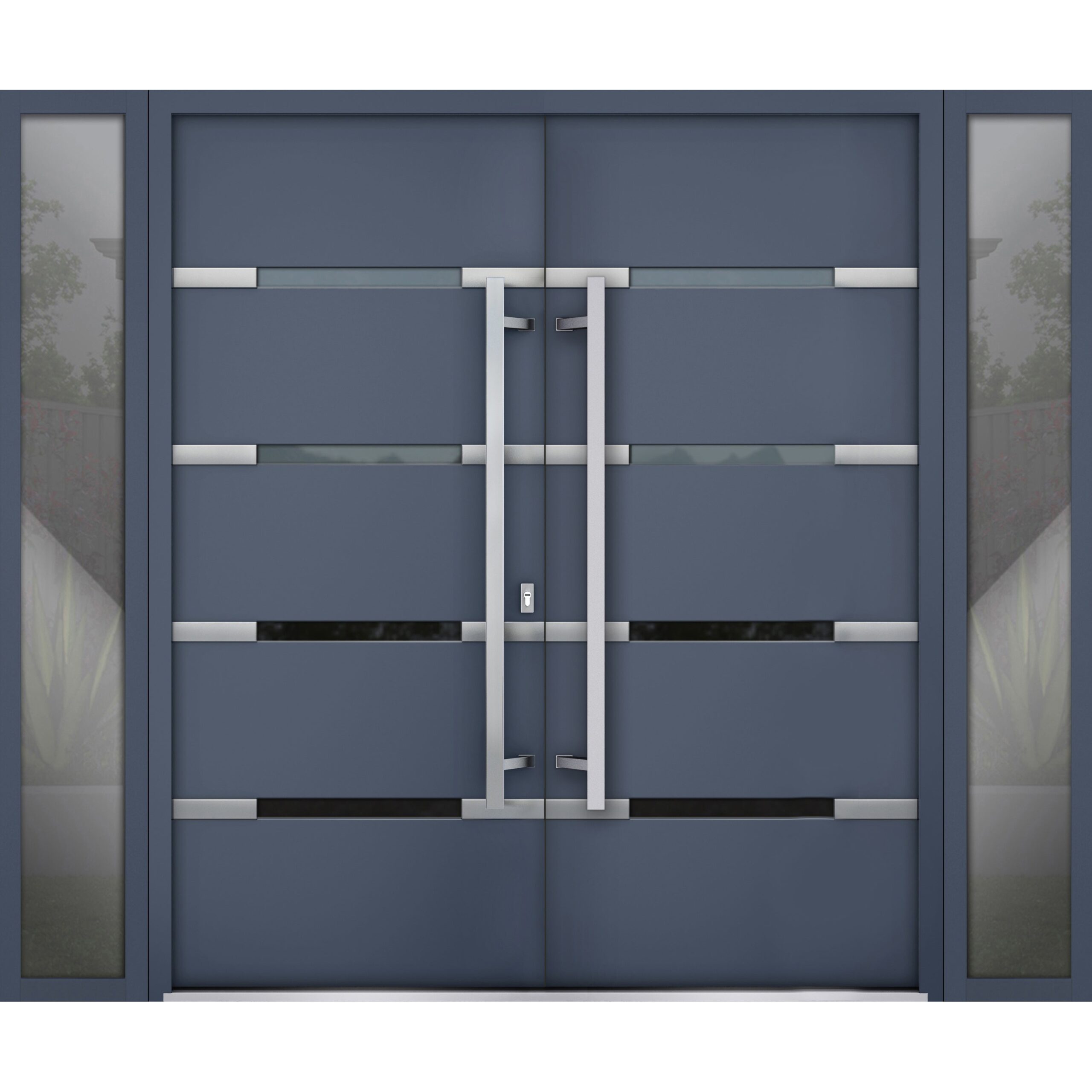 Front Exterior Prehung Steel Double Doors / Deux 1105 Gray Graphite / 2 Sidelight Exterior Windows / Stainless Inserts Single Modern Painted