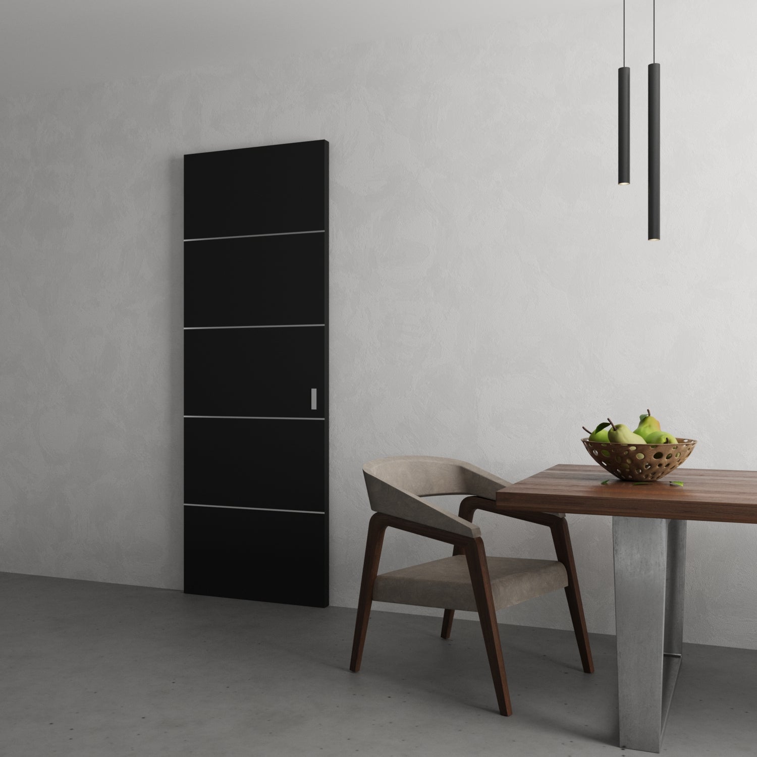 Hidden Barn | Planum 0210 Black Matte | Sturdy Finished Modern Doors | Magic Concealed Sliding Set