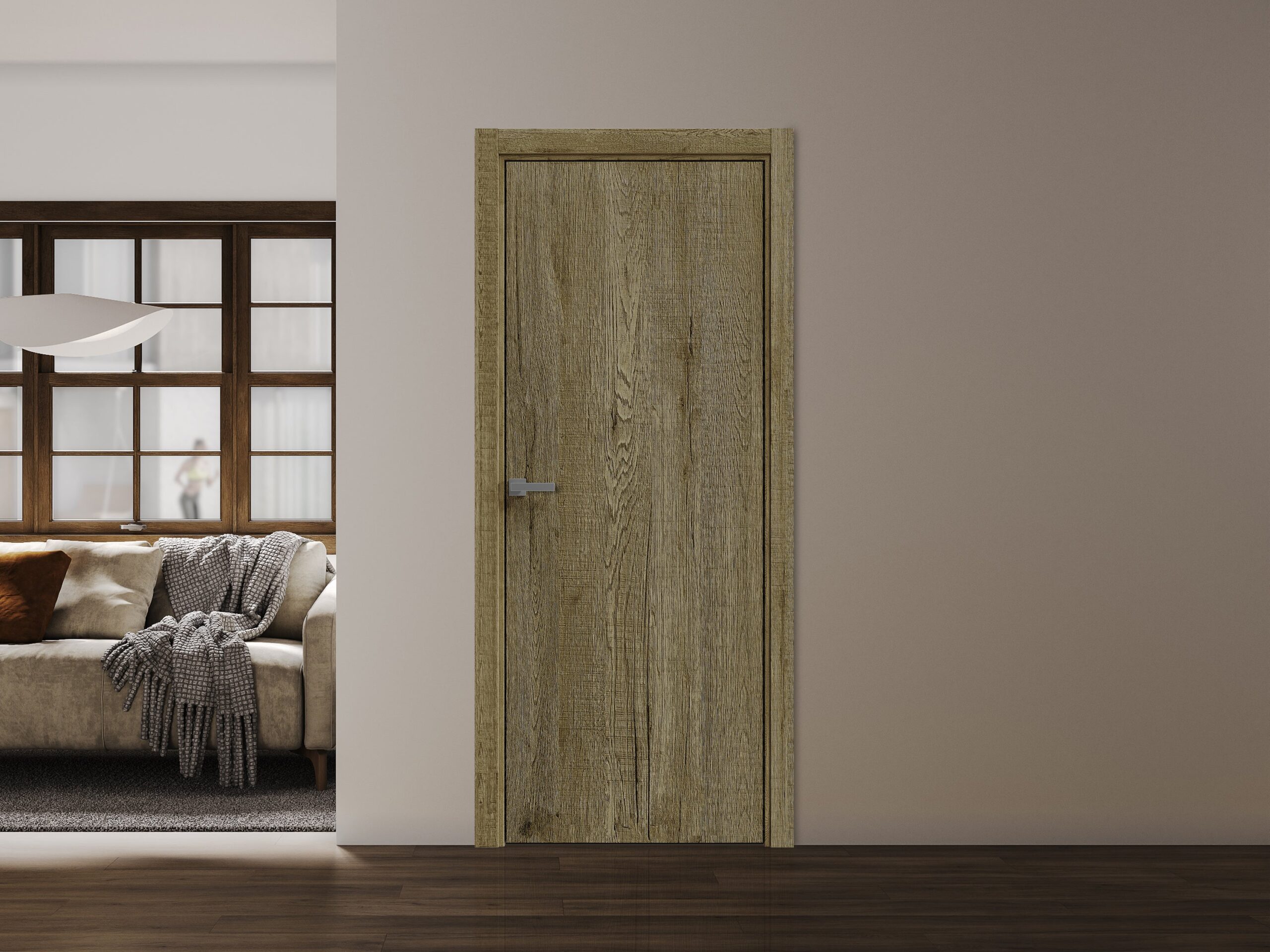 Interior Solid French Door | BASIC 3001 Antique Oak | Single Regular Panel Frame Handle | Bathroom Bedroom Modern Doors