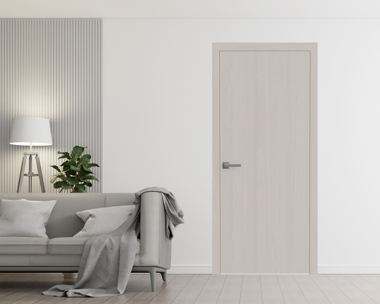 Interior Solid French Door | BASIC 3001 Ash | Single Regular Panel Frame Handle | Bathroom Bedroom Modern Doors