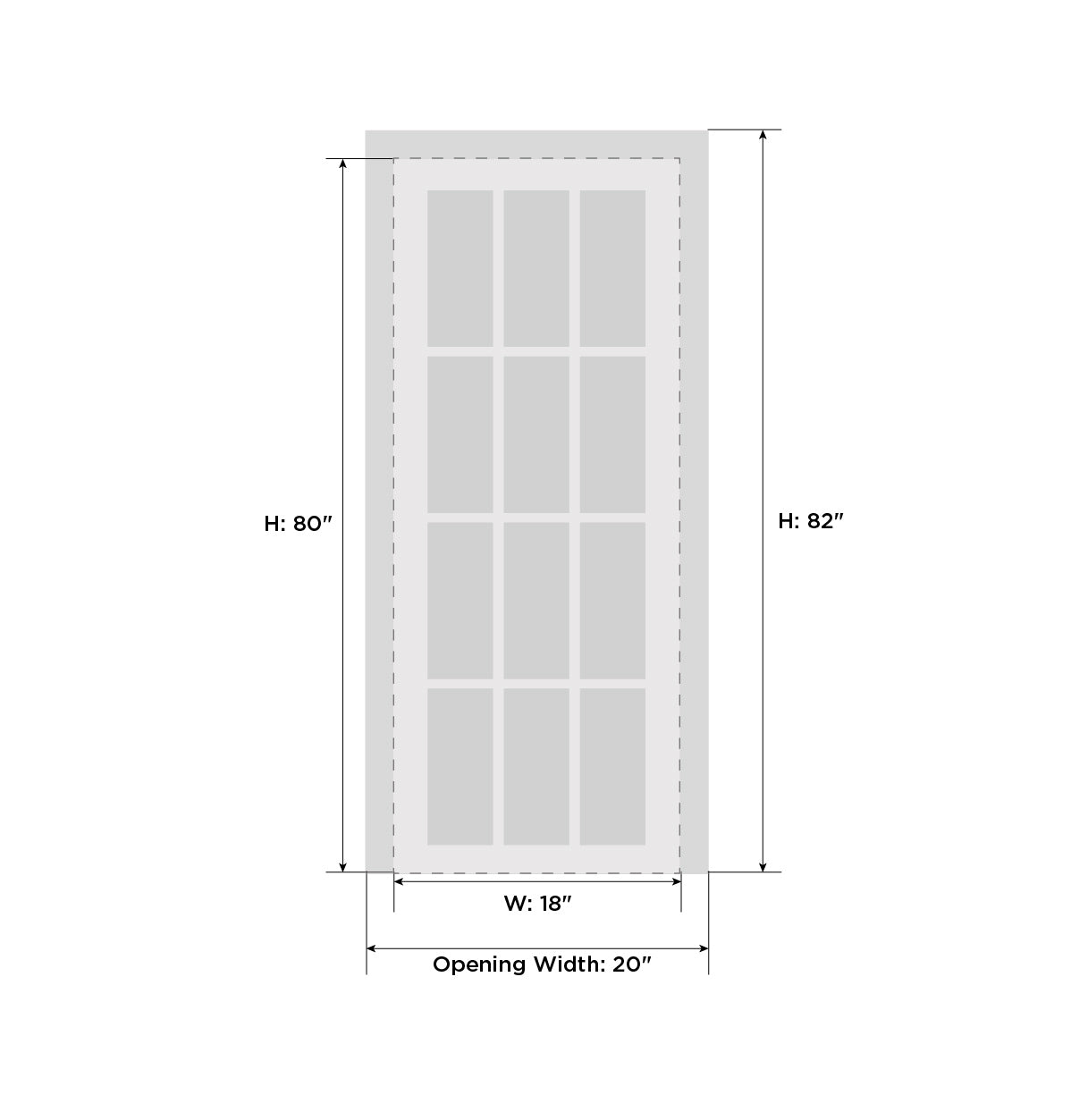 Minimal rough opening can be calculated: door width + 2″; door height + 1 1/2″.