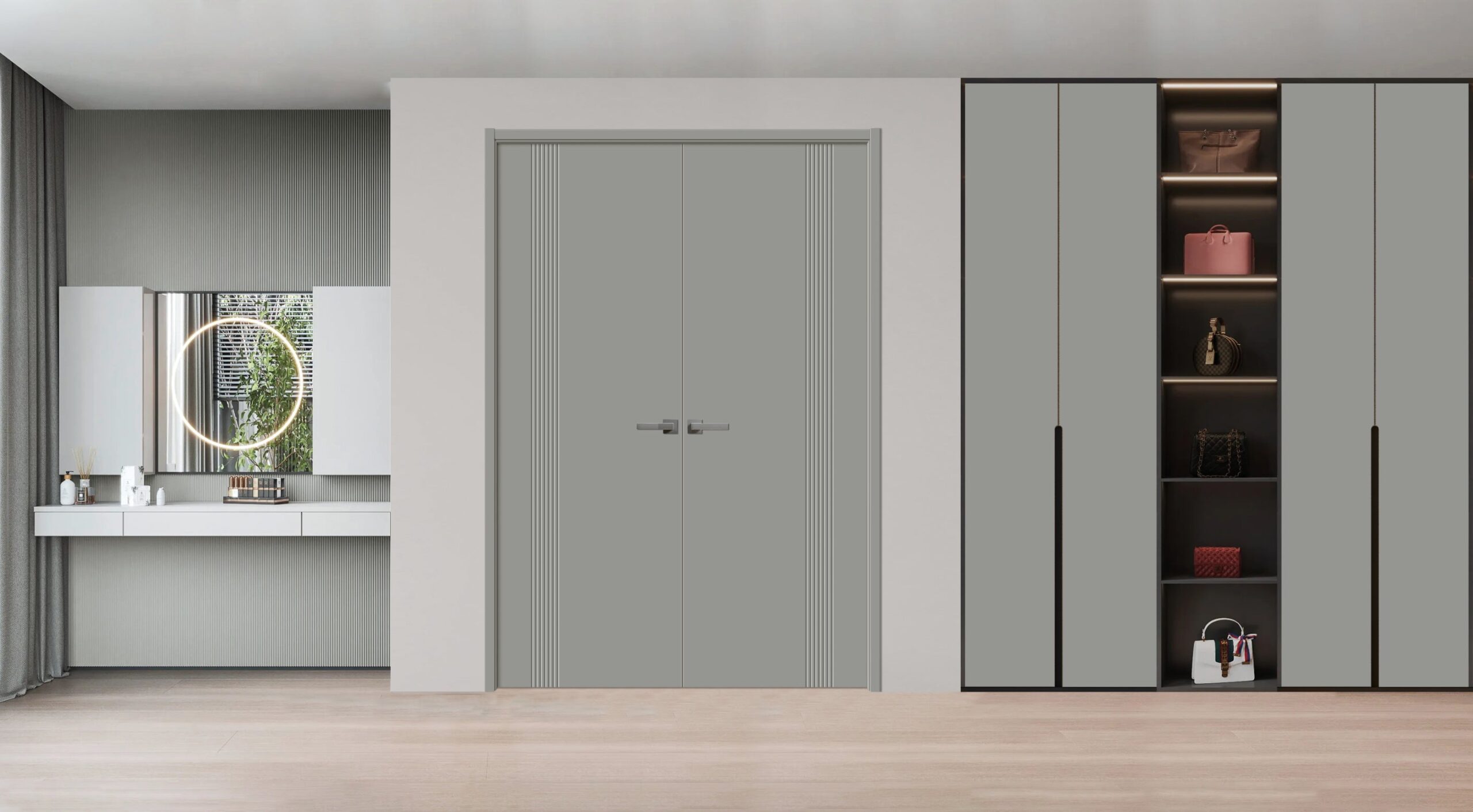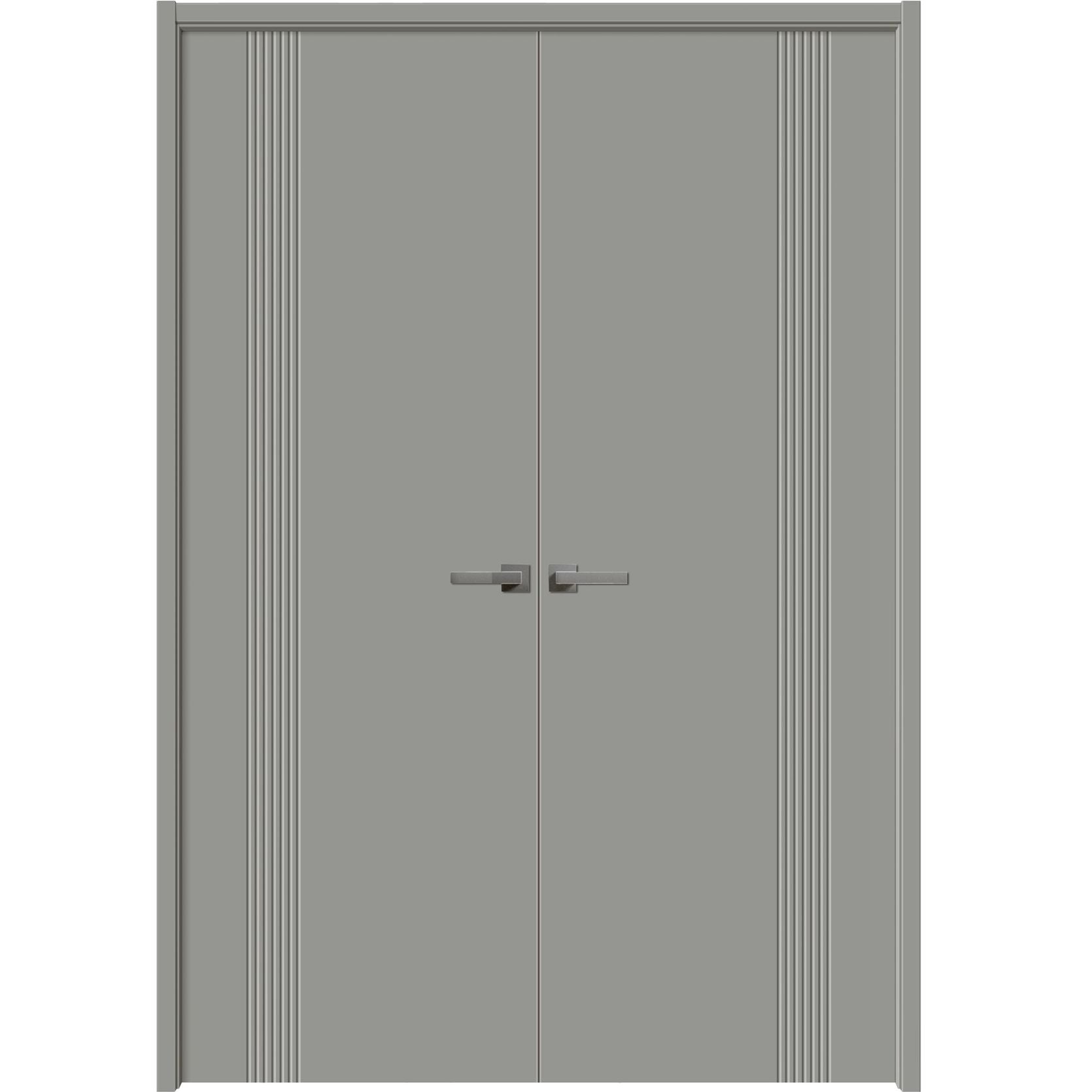 Interior Solid French Double Doors | BASIC 0111 Dove Grey | Wood Interior Solid Panel Frame | Closet Bedroom Modern Doors