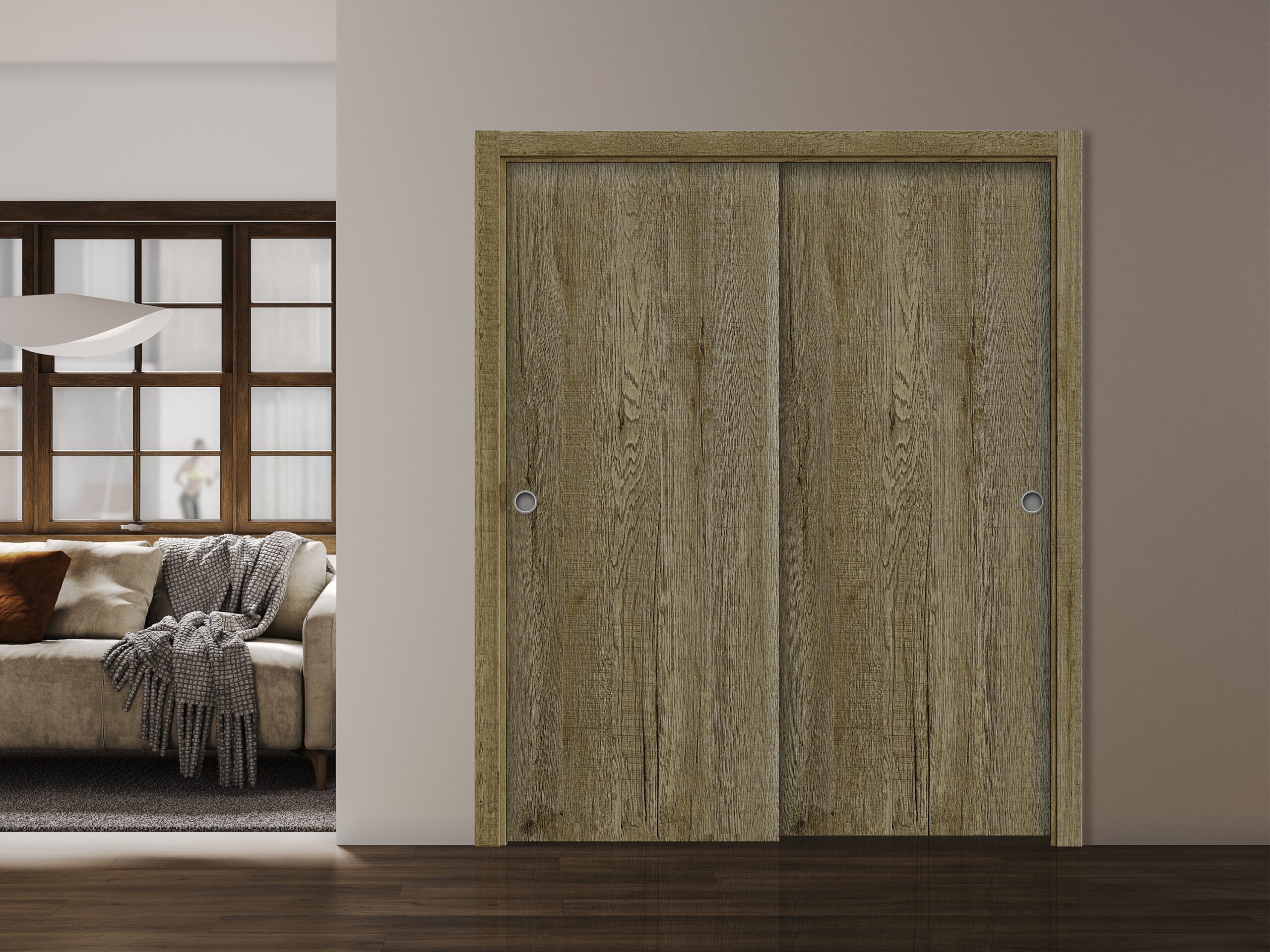 Interior Solid French Double Doors | BASIC 3001 Antique Oak | Wood Interior Solid Panel Frame | Closet Bedroom Modern Doors