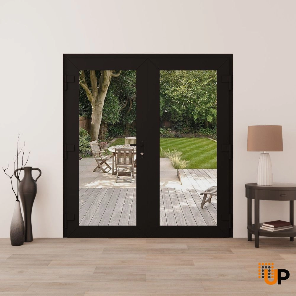 Manux 8666 Double Swing Metal-Plastic Entry Door Black Matte