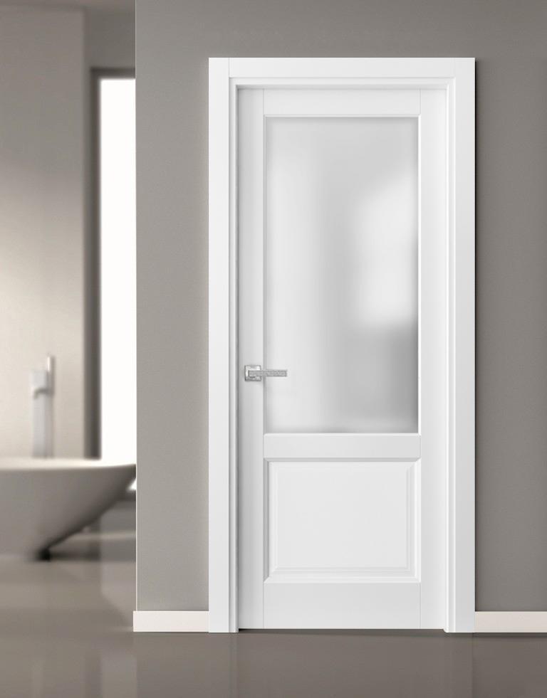 Pantry Kitchen Lite Door with Hardware | Lucia 22 White Silk with Frosted Opaque Glass | Single Panel Frame Trims | Bathroom Bedroom Sturdy Doors