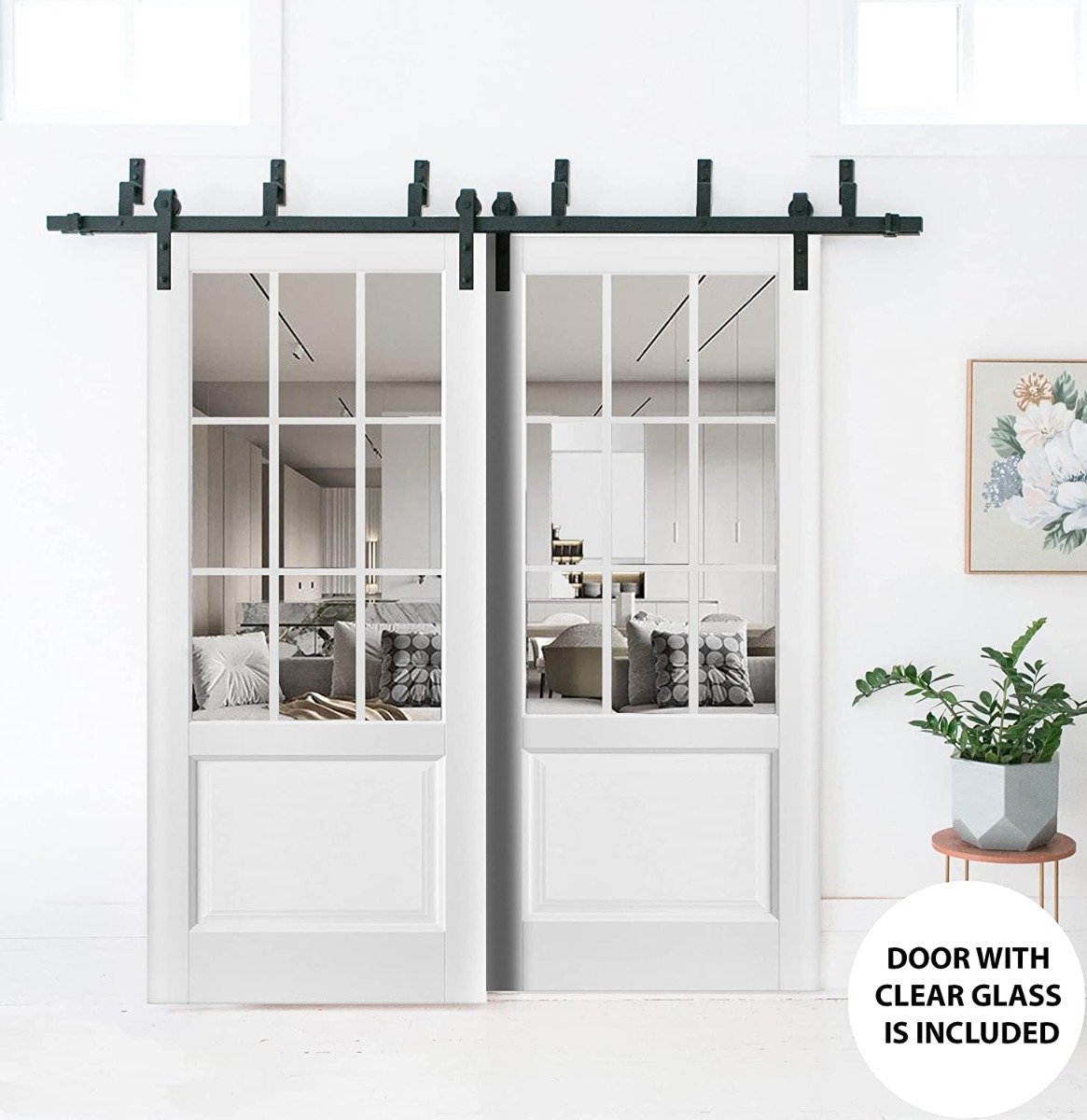 Slab Barn Door Panel | Felicia 3599 White Silk with Clear Glass | Sturdy Finished Doors | Pocket Closet Sliding