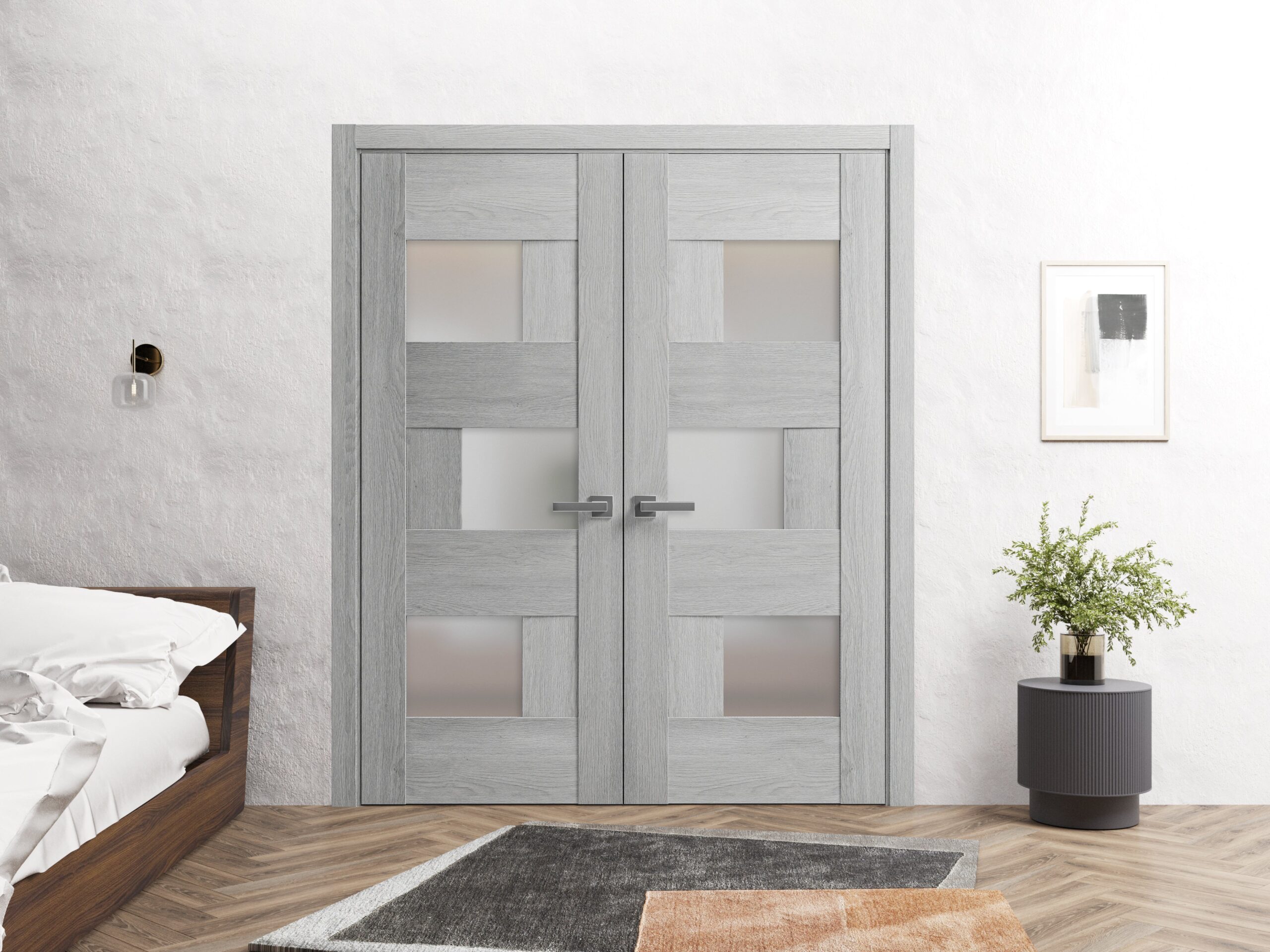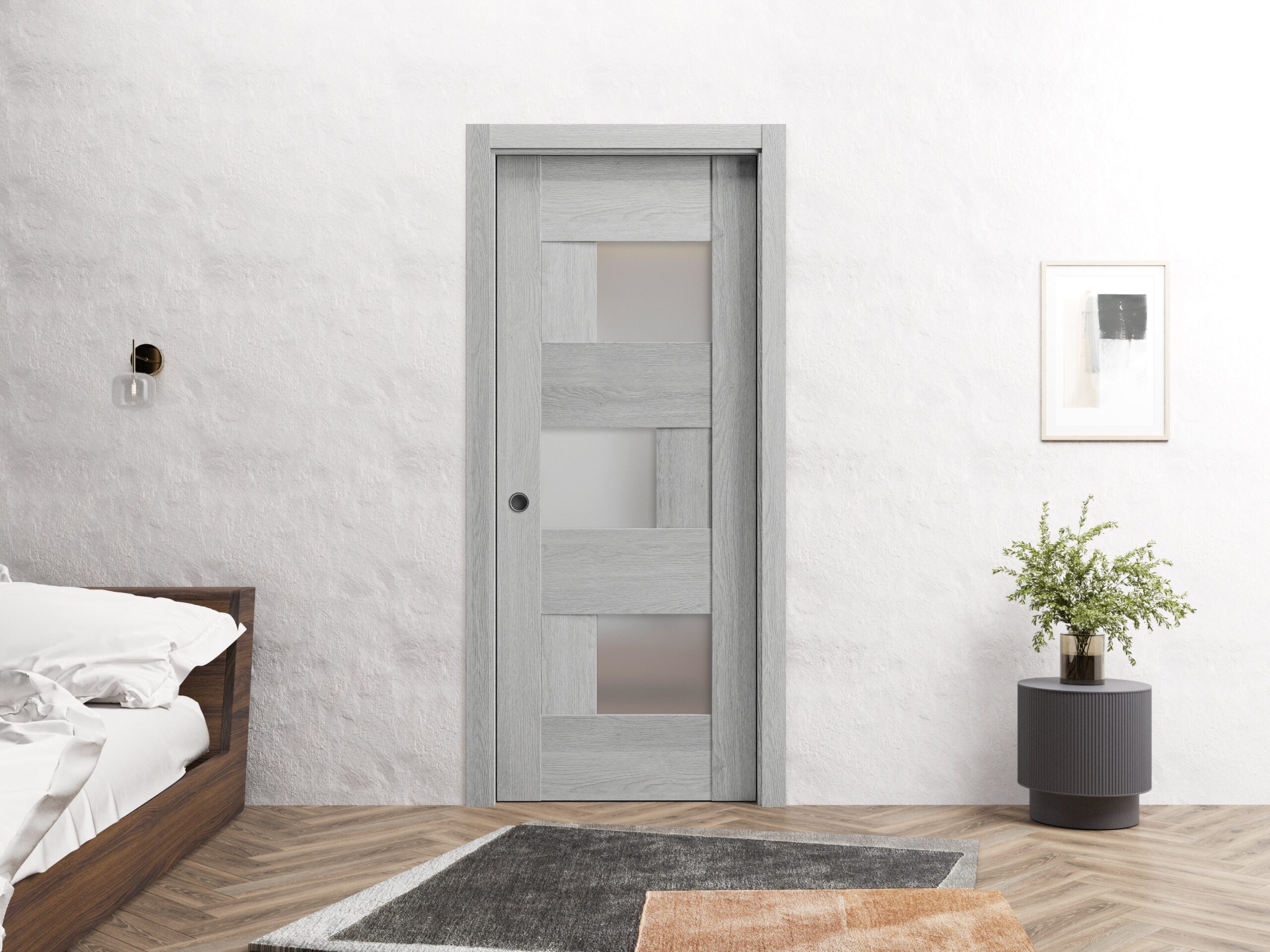 Slab Barn Door Panel Frosted Glass | Sete 6933 Light Grey Oak | Sturdy Finished Doors | Pocket Closet Sliding