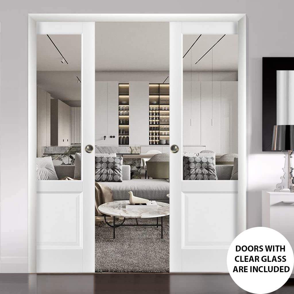 Slab Barn Door Panel | Lucia 1533 White Silk with Clear Glass | Sturdy Finished Wooden Kitchen Pantry Shaker Doors | Pocket Closet Sliding