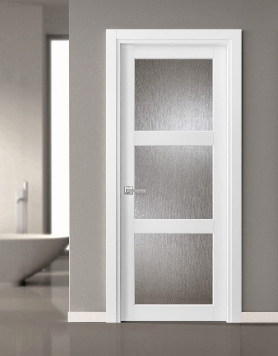 Slab Barn Door Panel | Lucia 2588 White Silk with Rain Glass | Sturdy Finished Doors | Pocket Closet Sliding -“-Rain Glass