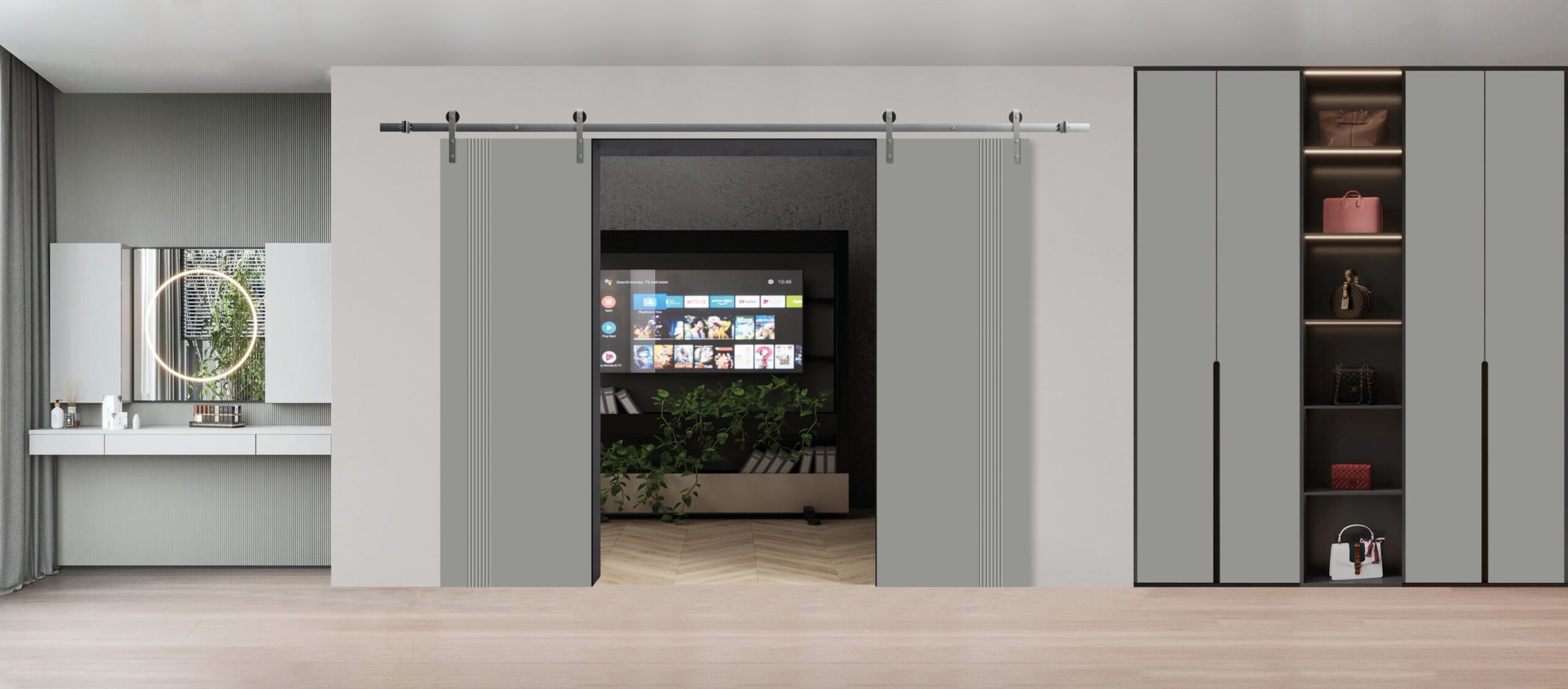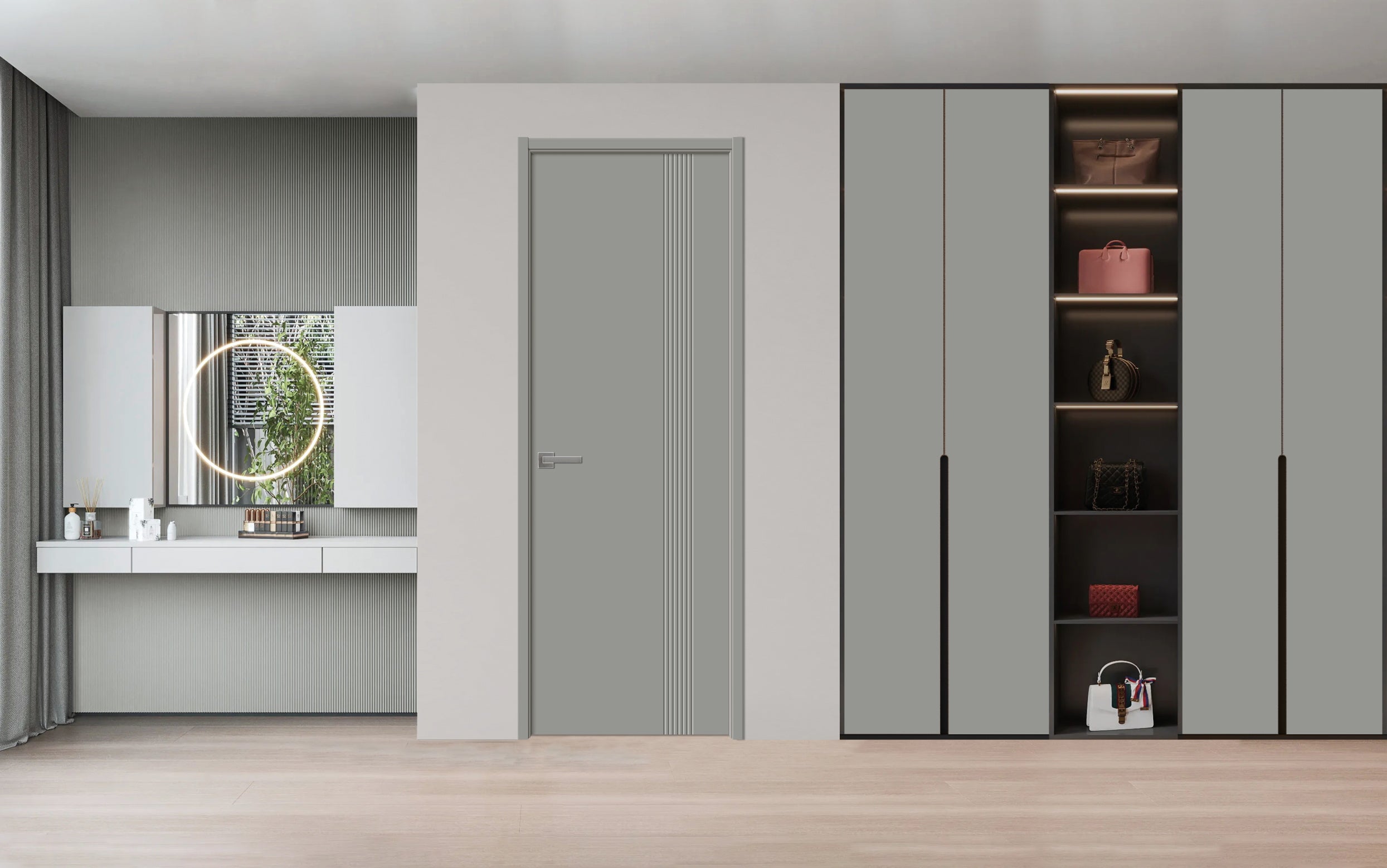 Slab Door Panel | BASIC 0111 Dove Grey | Wood Veneer Doors | Pocket Closet Sliding Barn