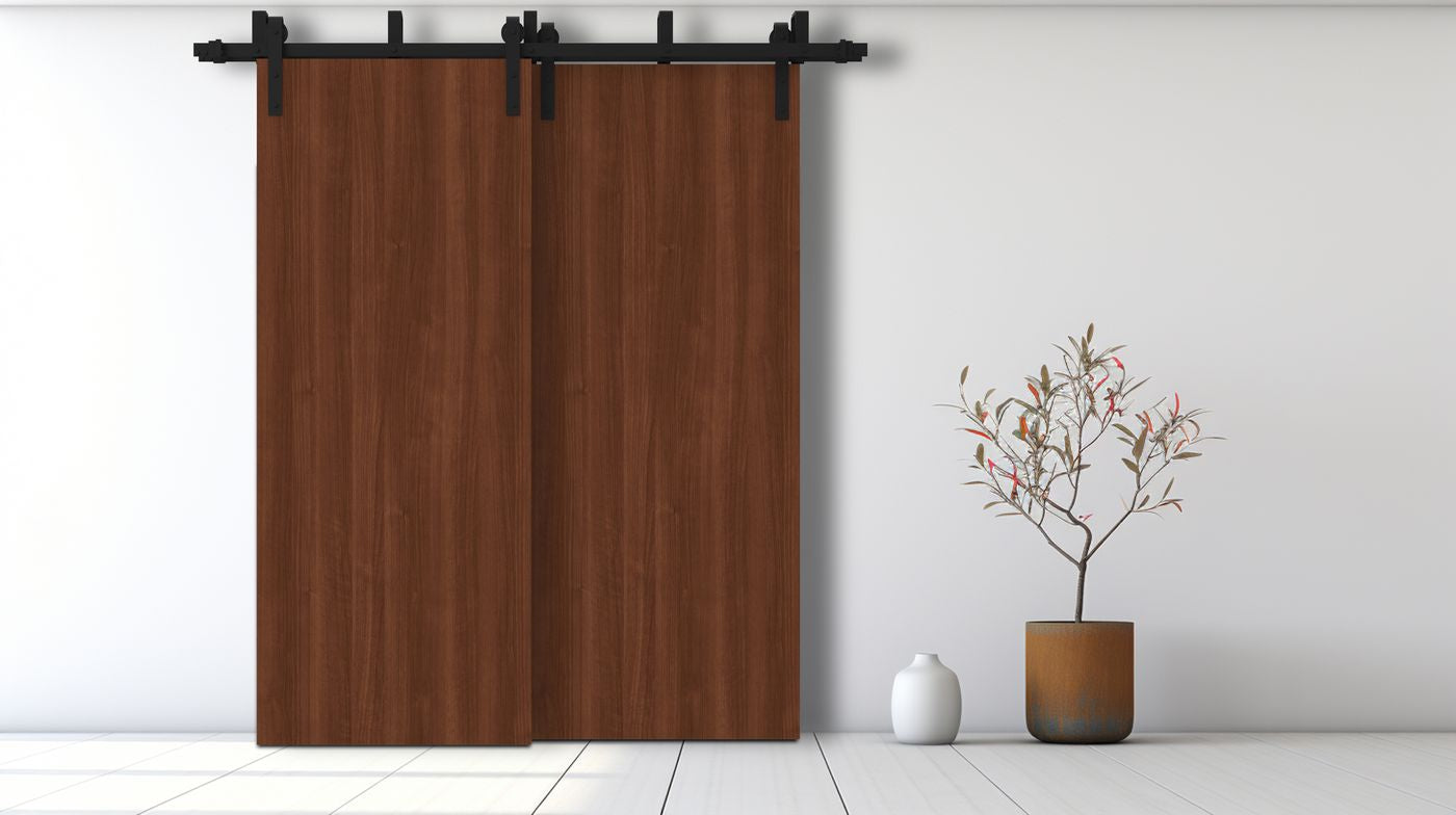 Sliding Closet Barn Bypass Doors | BASIC 3001 Walnut | Modern 6.6ft Rails Hardware Set | Wood Solid Bedroom Wardrobe Doors