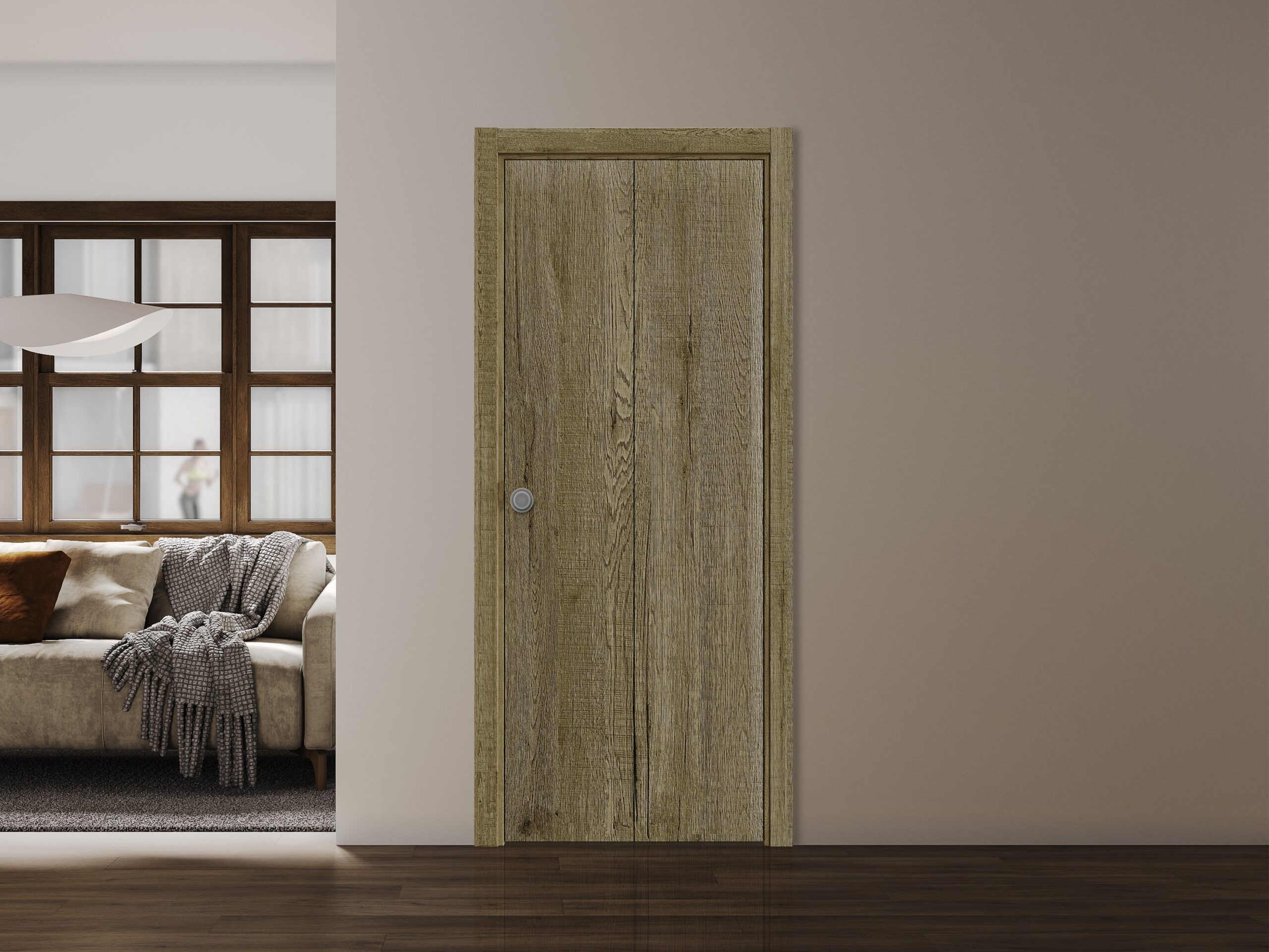 Sliding Closet Bi-fold Doors | BASIC 3001 Antique Oak | Sturdy Tracks Moldings Trims Hardware Set | Wood Solid Bedroom Wardrobe Doors