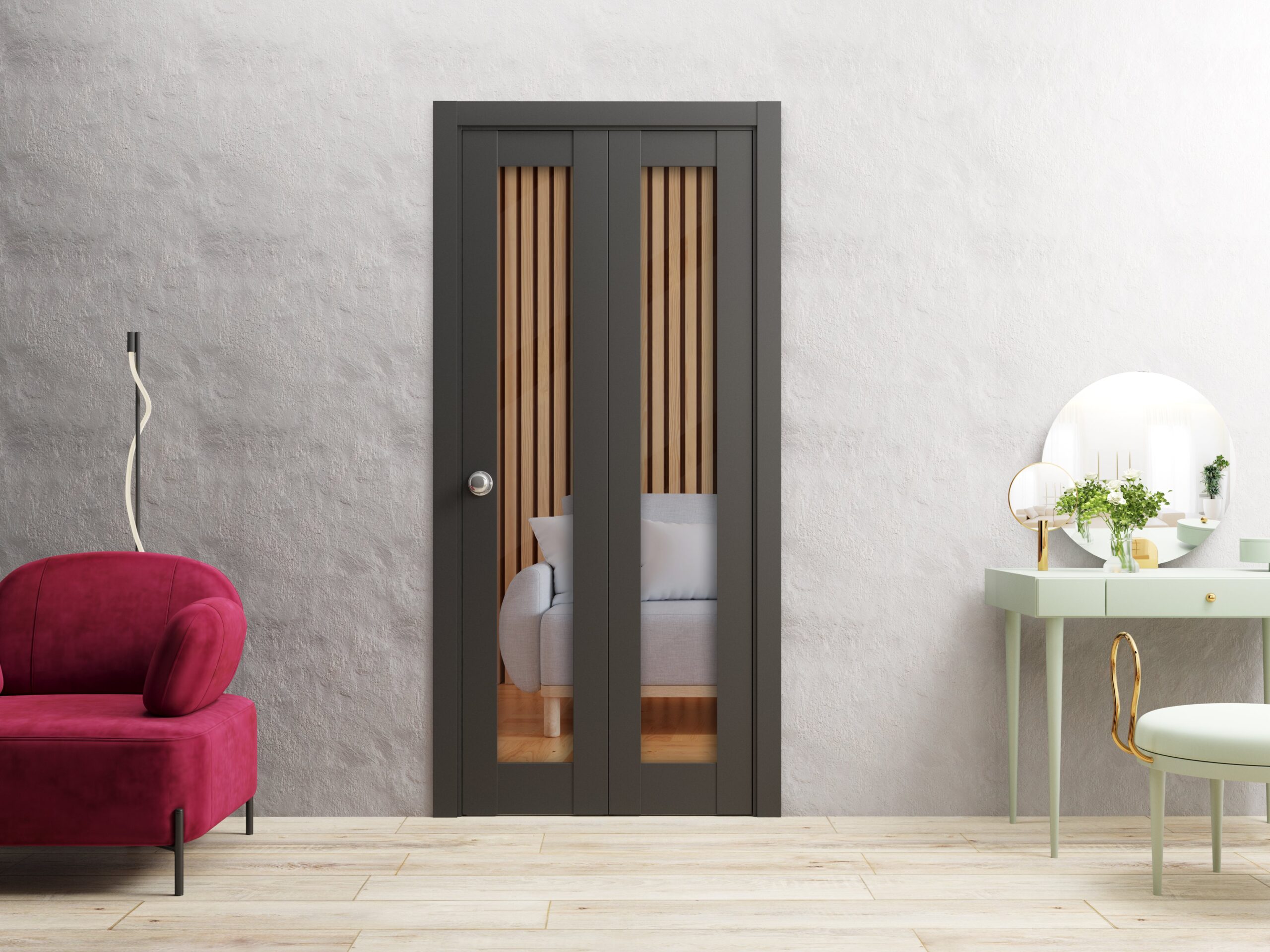 Introducing our sleek and sophisticated collection of “Modern Bi-fold Doors,” designed to transform your living space and add a touch of luxury and style to your home. These doors are made of high-quality wood with a solid core construction, ensuring durability and longevity.