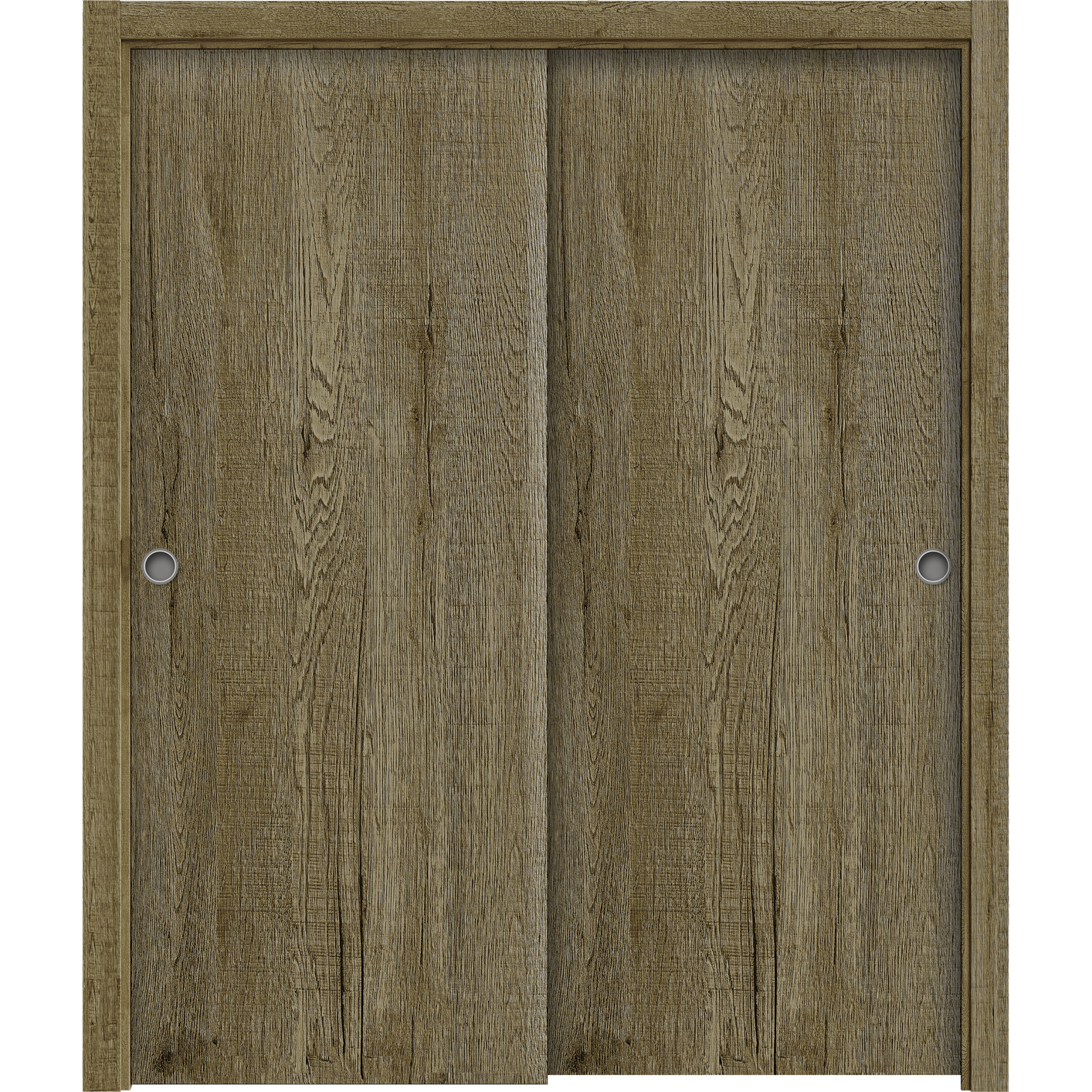 Sliding Closet Bypass Doors | BASIC 3001 Antique Oak | Rails Hardware Set | Wood Solid Bedroom Wardrobe Doors