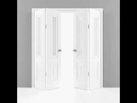 Sliding Closet Double Bi-fold Doors | Lucia 8822 White Silk with Frosted Glass | Sturdy Tracks Moldings Trims Hardware Set | Wood Solid Bedroom Wardrobe Doors