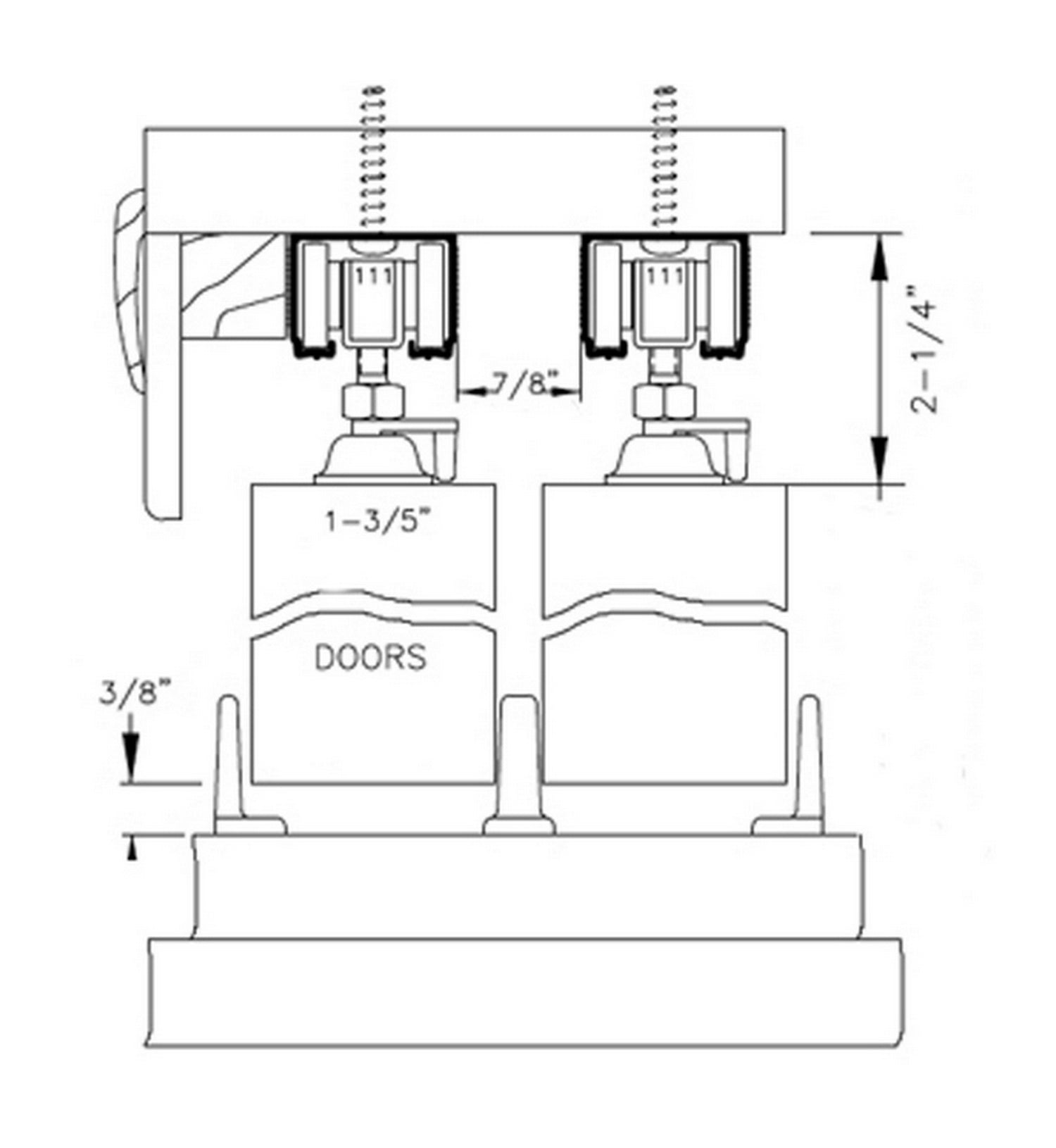 – 4 door hangers with wheels (require extra 2 1/2″ of the height);