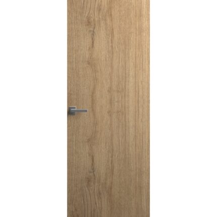 Invisible Solid Hidden Door with Handle | Planum 0010 Light Oak with Black Hidden Frame Left-hand Inswing Black Frame | Concealed Hinges Lock Handle | Modern Frameless Doors