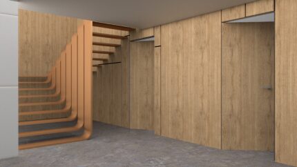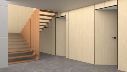 Invisible Solid Hidden Door with Handle | Planum 0010 Split Wood with Silver Hidden Frame Left-hand Inswing Silver Frame | Concealed Hinges Lock Handle | Modern Frameless Doors