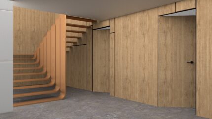 Invisible Solid Hidden Door with Handle | Planum 0010 Split Wood with Black Hidden Frame Left-hand Inswing Black Frame | Concealed Hinges Lock Handle | Modern Frameless Doors