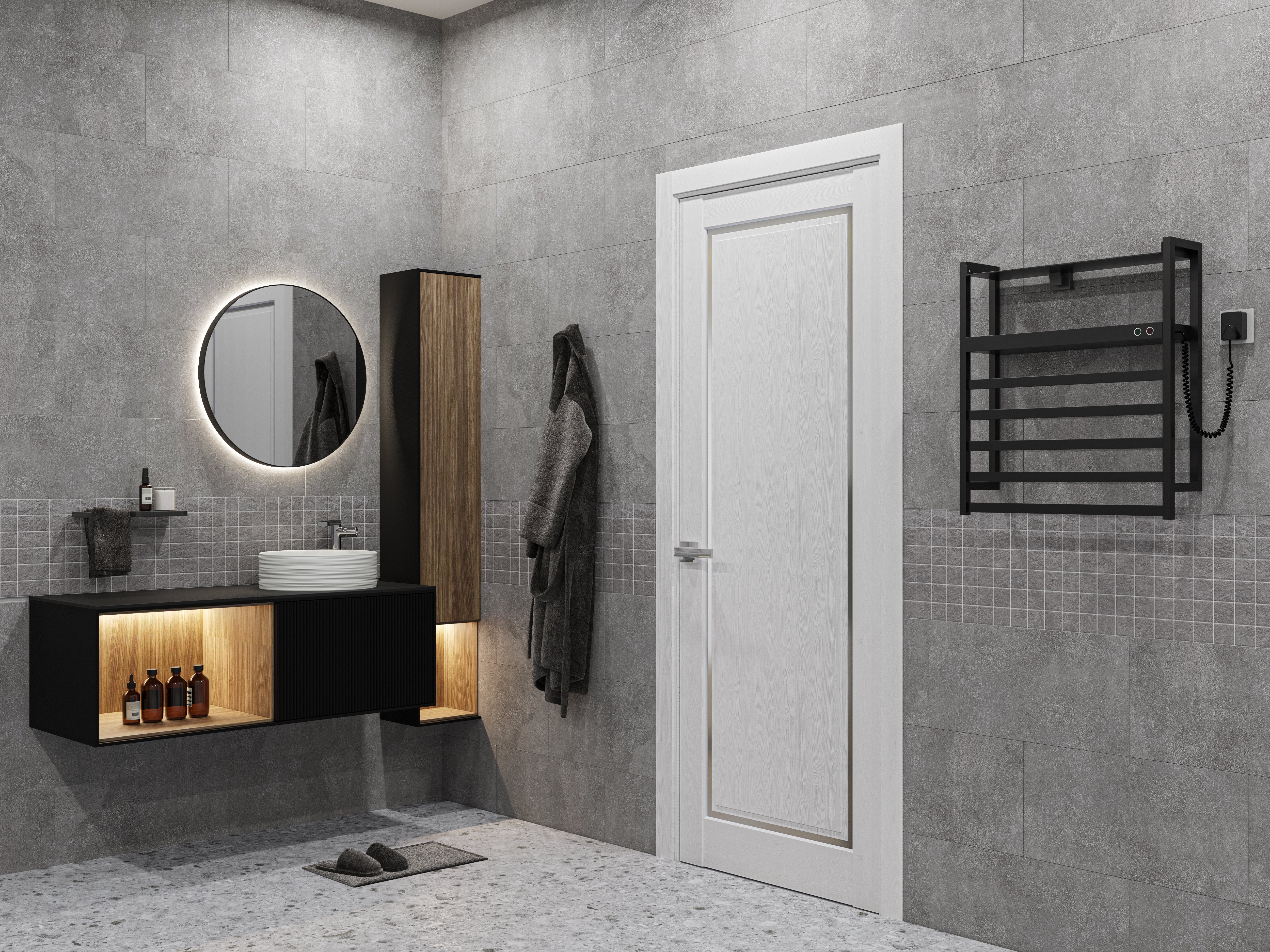 Modern Wood Interior Door with Hardware | Planum 0011 Concrete | Single Panel Frame Trims | Bathroom Bedroom Sturdy Doors