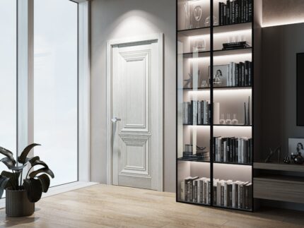 Modern Wood Interior Door with Hardware | Majestic 9024 Painted White | Single Panel Frame Trims | Bathroom Bedroom Sturdy Doors