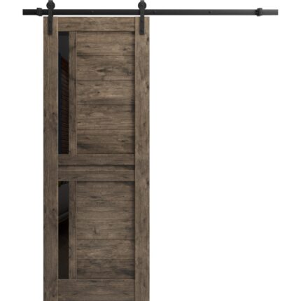 Sturdy Barn Door | Veregio 7588 Cognac Oak with Black Glass | 6.6FT Rail Hangers Heavy Hardware Set | Solid Panel Interior Doors